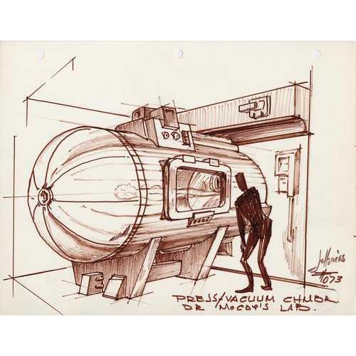The approach to interiors is the same as exteriors… In the early stages, John Dwyer, set decorator, comes in and looks at the initial drawings. Then he and I sit down and have a talk about what I have in mind. He proceeds to put his talents to work finding the proper dressing along the lines of what we’ve discussed. I depend on this man very heavily, not only to carry out my ideas but to come up with an endless fountain of his own ideas. And he does. For the most part, stage 9 [which houses almost all of the standing sets for the Enterprise] is a very static set, and John can turn that over to his assistant, Mike May. Then John has the opportunity of getting off the lot and searching for unusual things — something particular he has in mind, or some idea of mine. But John has the opportunity to get out and look where I don’t. So he’s my floating eyes and sticky fingers…that’s where all the ‘freebies’ come in too. He has a wonderful knack for finding these things.