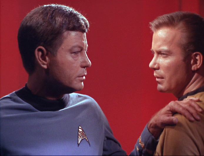 It is one of the best scenes in all of Star Trek. The captain, at a critical moment when a poor decision could lead to the loss of his ship and a catastrophic rise in tensions with an old enemy, confides his fear and insecurity to one of his closest friends. McCoy’s reassurance hits just the right note, and Kirk returns to a hushed and darkened bridge to once again make the next move.