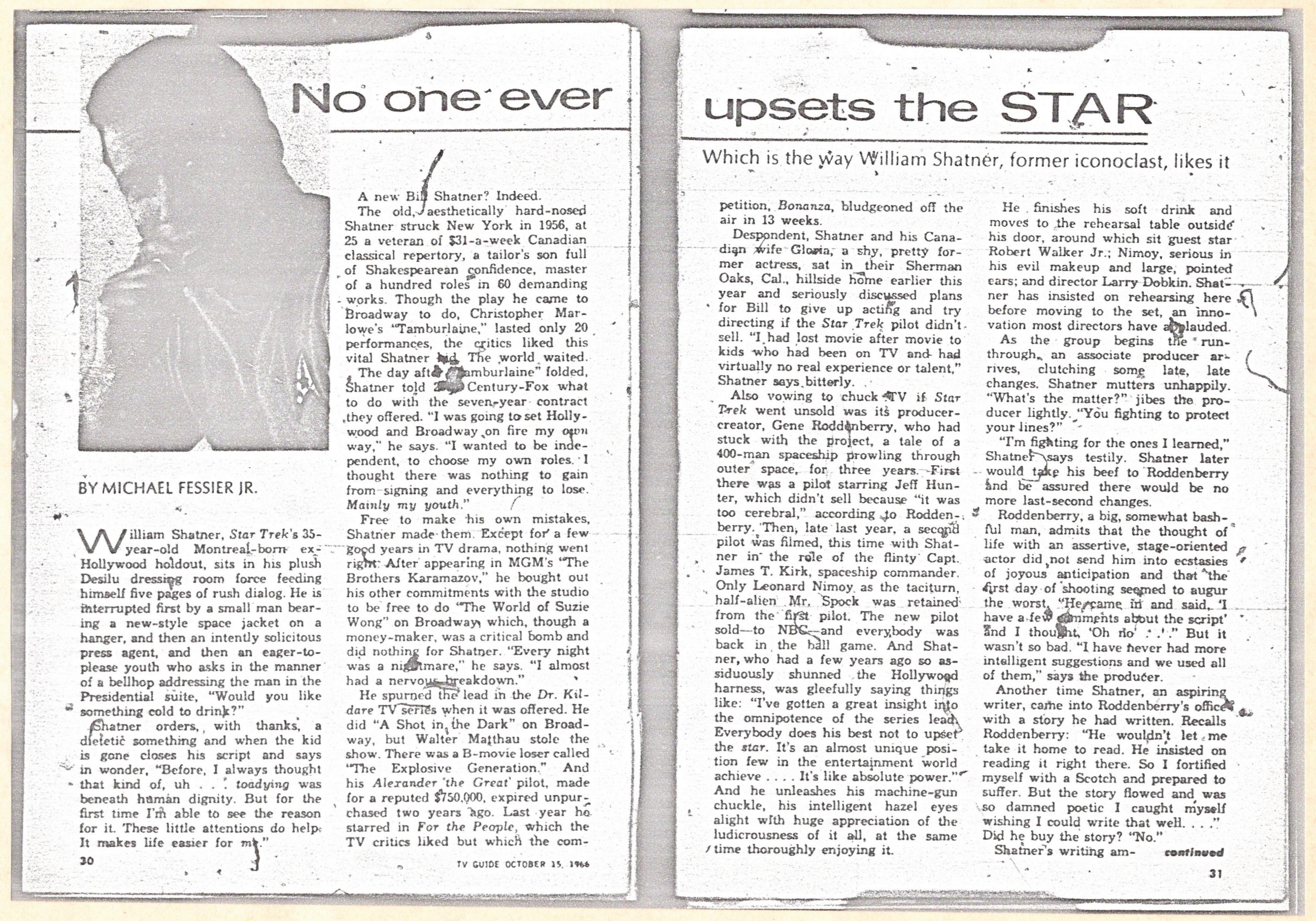 1. Ah, this was wonderful! Thank you for sharing it. I had a 3-ring binder full of Star Trek clippings circa 1986-1990, but I fear I discarded it long ago. I remember I had a newspaper clipping proudly declaring Star Trek V #1 at the box office (the only weekend it held that distinction, if I recall correctly). I also had the 1986 Newsweek cover story article on Star Trek IV (I remember it declared “the series basically complete at this point” – ha!). And you watched and clipped pics of things because they had Shatner in them – I had a crush on Kirstie Alley that had me watching the “North and South” miniseries and her debut on “Cheers” 🙂
