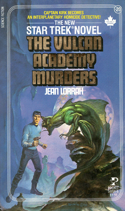 Postscript: I have to call shenanigans on the cover of The Vulcan Academy Murders. Spock is pictured confronting a le-matya (first seen in the animated episode Yesteryear) but in the novel Spock never even travels out into the desert and never encounters the predator.