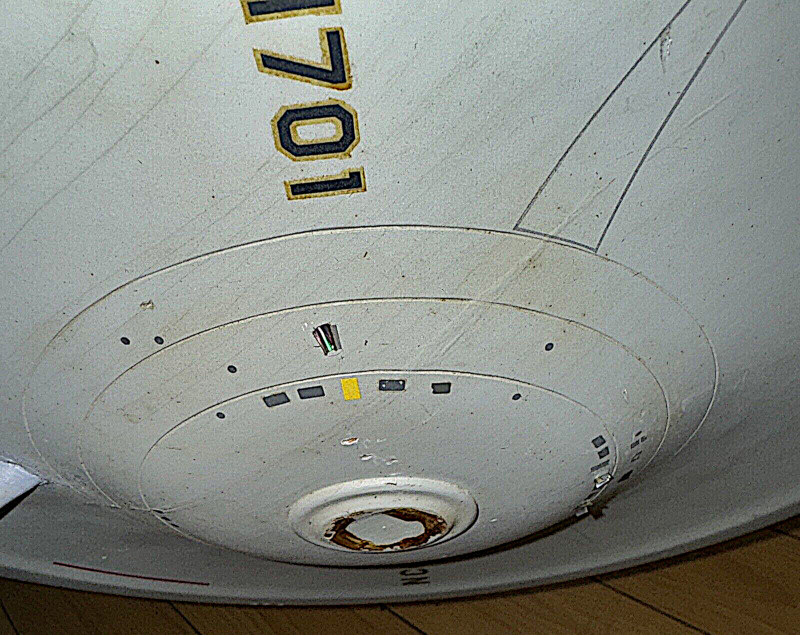 3. The original model shown in ‘The Cage’ had an extremely large deflector dish that was larger than the housing for it. It also had spikes coming out of the Bussard collectors like the one Spock is holding in the image. Anyone know the reason for the discrepancies?