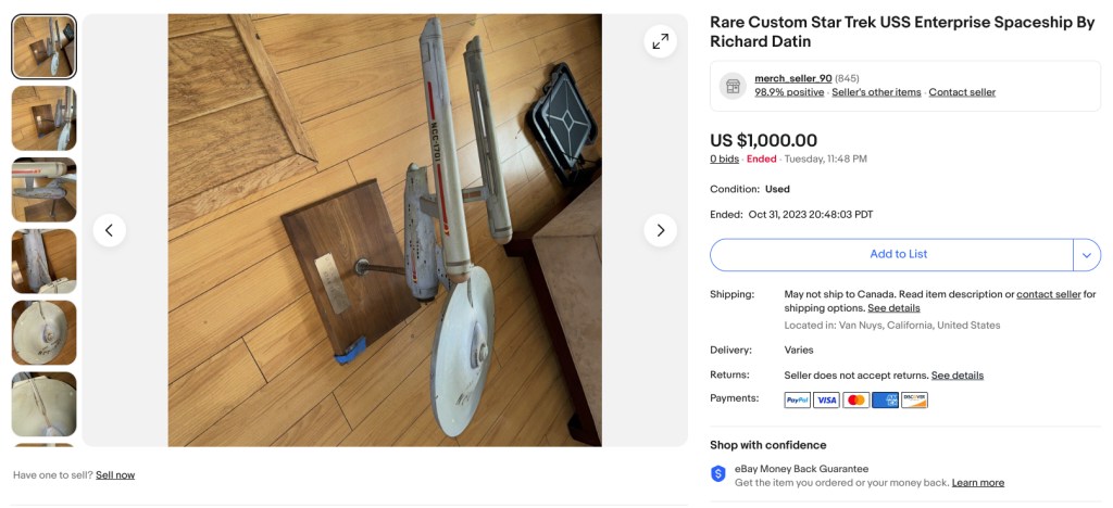 Since the listing was removed, one can only hope that the Roddenberry estate has been contacted and the model will end up in caring hands.