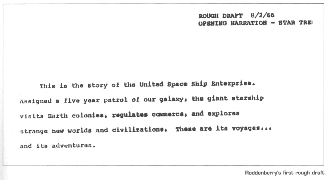 Dedicated Star Trek fans know that the famous “Space, the final frontier…” opening narration was not the first version written. The intro went through a number of revisions, some of which were not great.