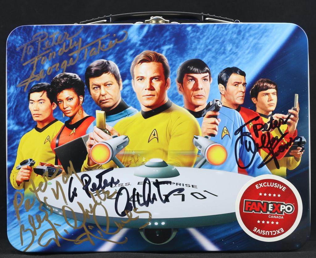 This post is long overdue. Back in 2019, I wrote about my 50th anniversary Fan Expo Star Trek lunchbox. It was produced in 2016 and, at that time, four main cast members were still alive: William Shatner, George Takei, Nichelle Nichols and Walter Koenig. Three of them were guests at that year’s Fan Expo convention in Toronto, and I had each sign for me.