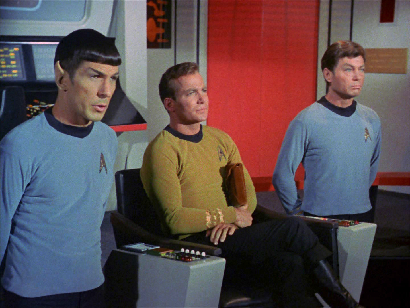 Interestingly, the transitions are not always accurate, as some scenes that are in black-and-white were present in The Menagerie, and so should be in colour. Here is an example, first from The Cage and then The Menagerie. Look at Captain Pike interacting with Tango.